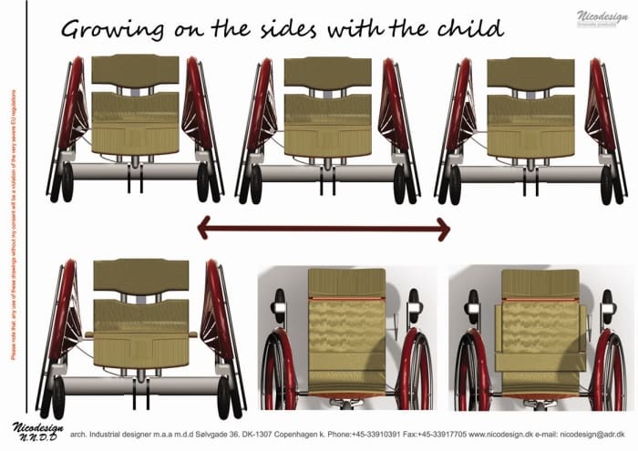 A couple days ago I wrote about the Krabat Sheriff children’s wheelchair which is an actual product you can purchase. A well designed wheelchair that has flexibility to adapt to different bodies and as a child grows. Here we have another children’s wheelchair that is designed to adapt to a growing child. This is the Handy FX by Spanish Strategic Product and Service Design student, Lander Balza.